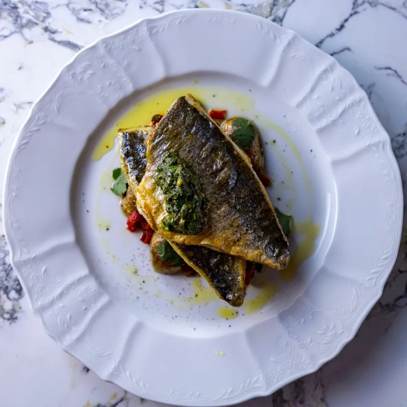 (филе дорадо, картофель baby, соус чимичурри)