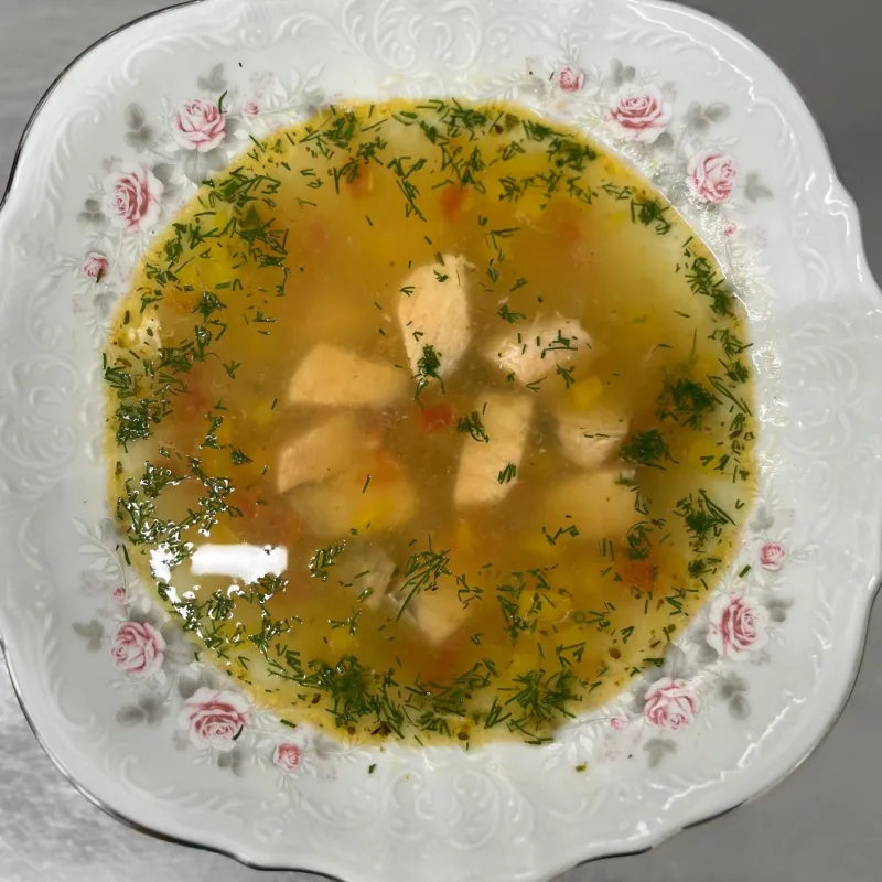 (куриное филе, домашняя лапша)