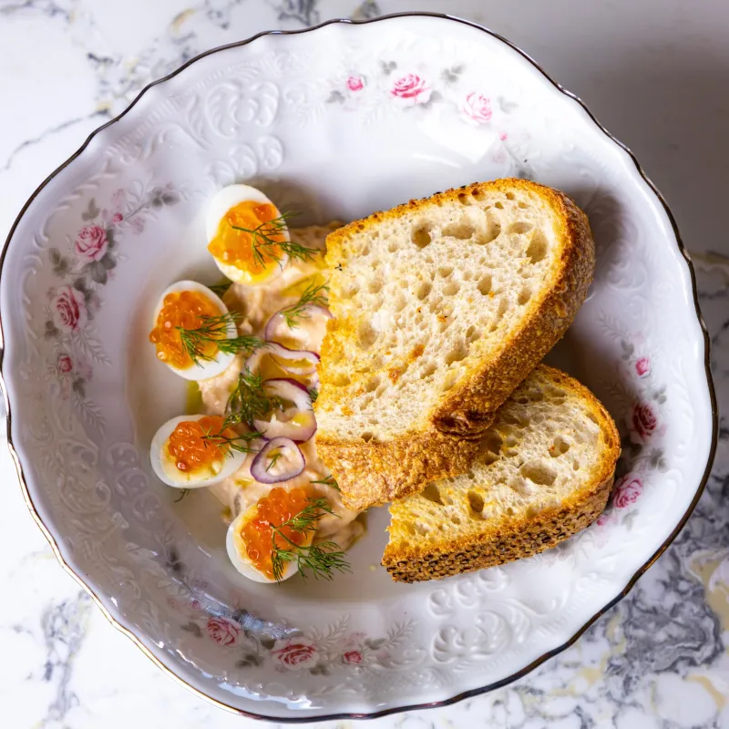 (подается с 2 кусочками поджаристого хлеба)