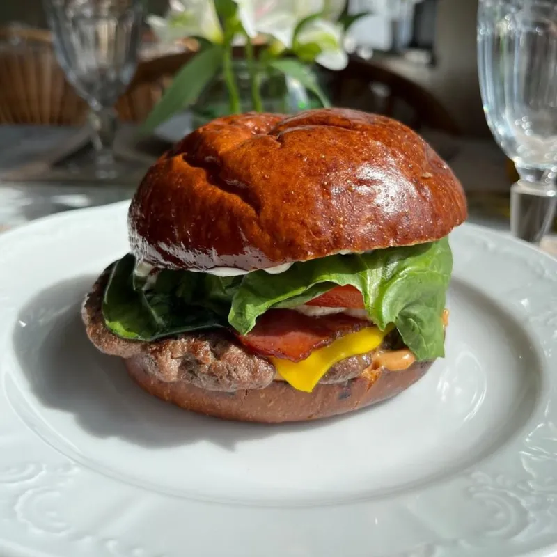 (красный лук, грибы, сыр, 4 вида соуса – халапеньо, блю чиз, базиликовый, грибной) мраморная котлета)