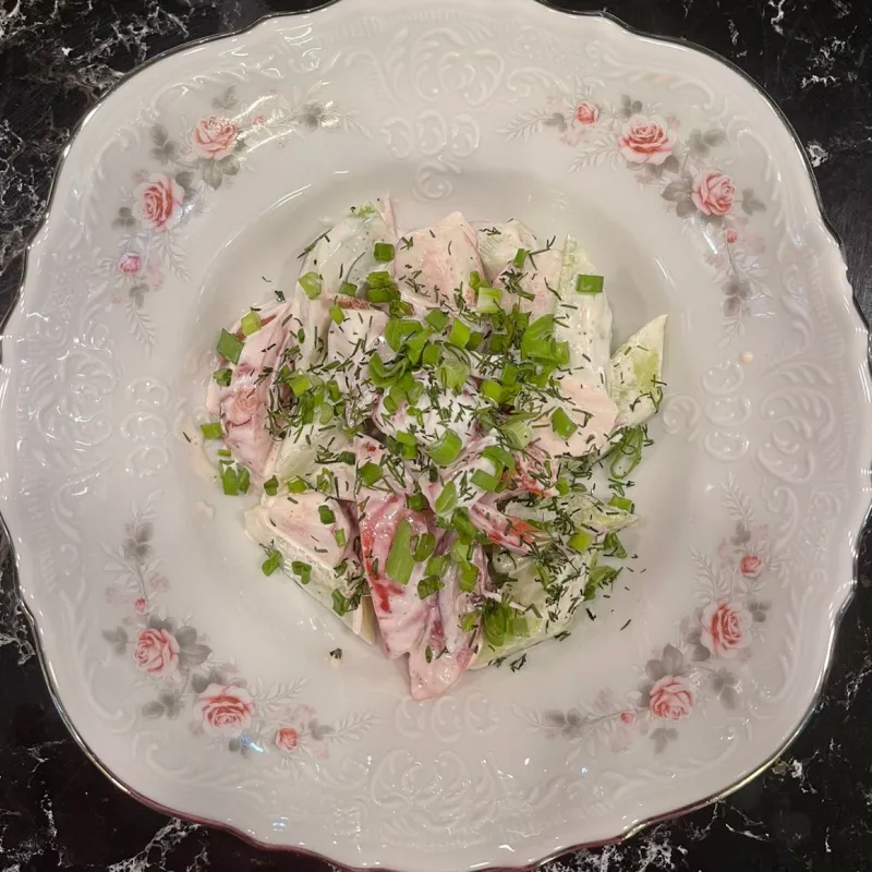 (ростбиф говядина, яйцо, картофель, огурцы, редис, лук)