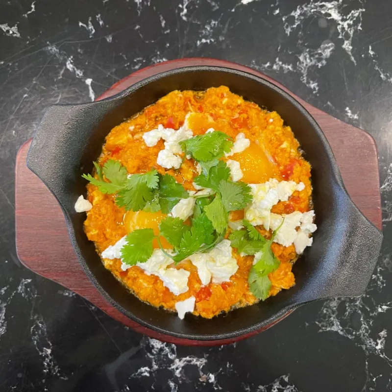 (шакшука, яйцо, сыр салакис, зелень)