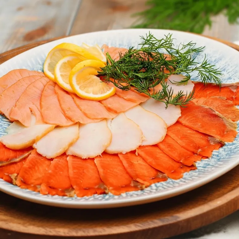 (Семга х/к, балык х/к, тарталетки, лимон, оливки)