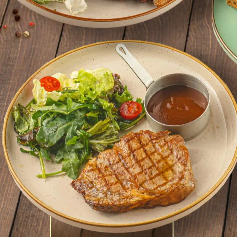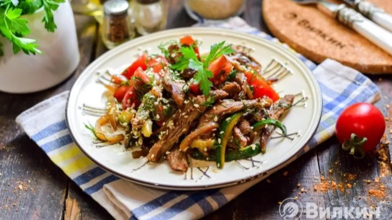 (Говядина, перец светофор, красный лук, цветная капуста, кукурузные початки, лоло россо, листья салата, кунжут, заправка кисло-сладкая)