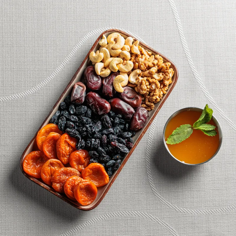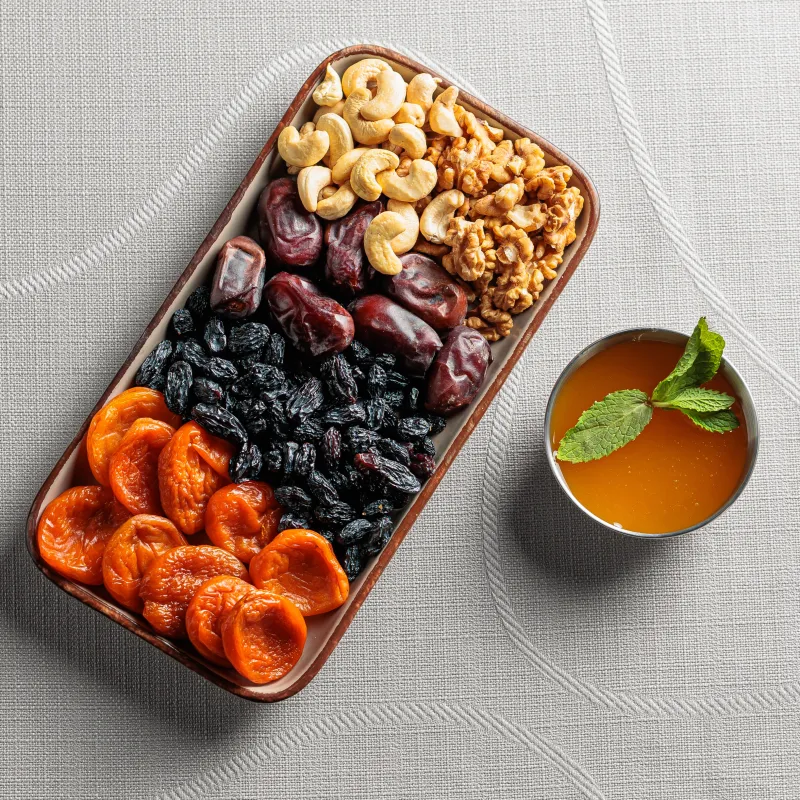 Курага, изюм, финики, орехи
