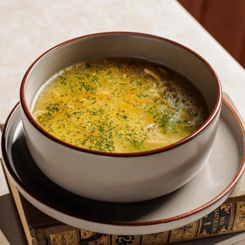 Состав: домашняя лапша, мясо птицы, зелень, специи
