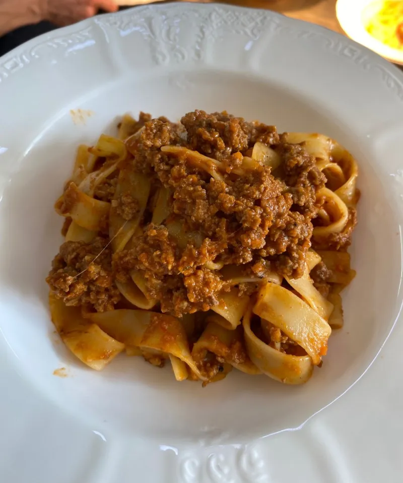 Феттучини,фарш болоньез,сыр пармезан