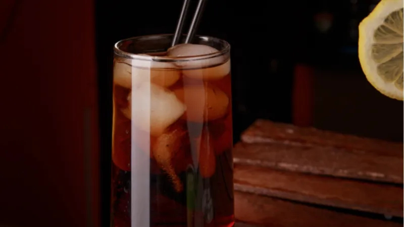 Состав: водка, светлый ром, текила, апельсиновый ликер, джин, пепси, лимон