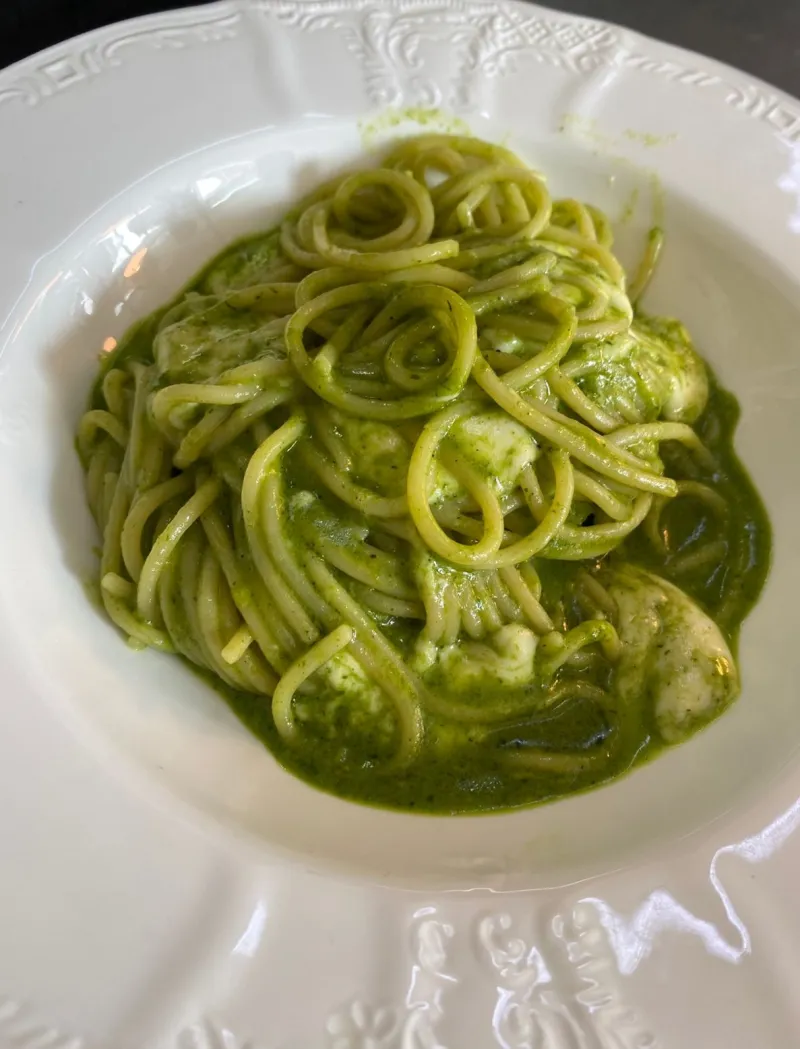 Спагетти Италия,моцарелла,пармезан,соус песто,масло оливковое