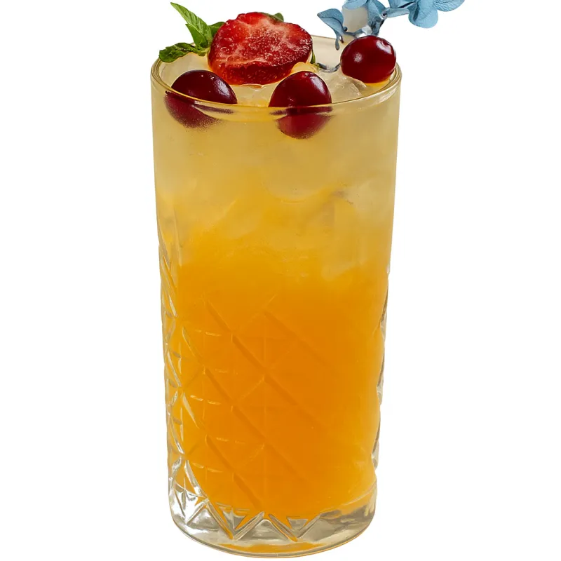 Яркий, освежающий коктейль, сочетающий апельсиновую бодрость и клубничную сладость. Сироп маракуйи придаёт тропическую глубину, а игристое вино — лёгкость и праздничные пузырьки. Этот коктейль — идеальный выбор для летнего вечера.