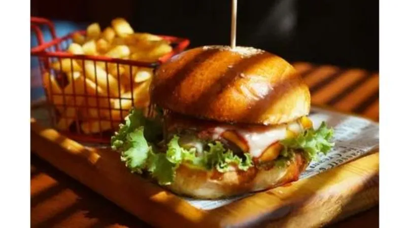 Айсберг , Сальса из печенных овощей,Соус чипотле, Сыр чеддер, котлеты приготовленные на углях, Булочка собственного приготовления.