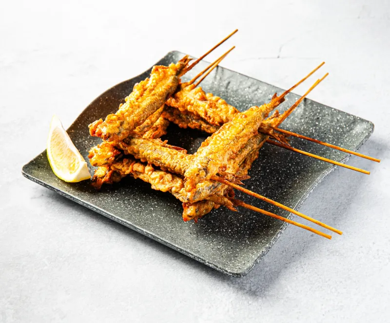 Мойва, в легкой панировке из рисовой муки и специй в хрустящей корочке.