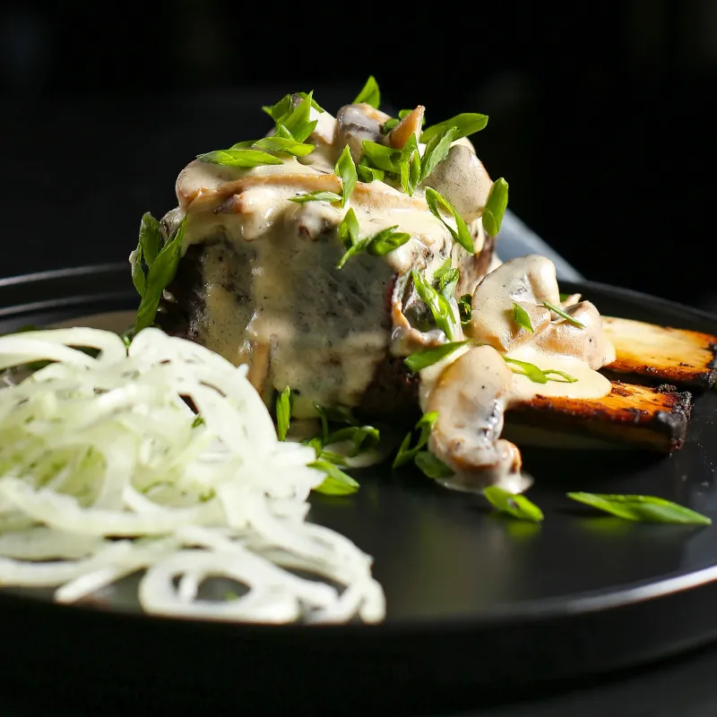 Говяжьи ребра в сливочно-грибном соусе