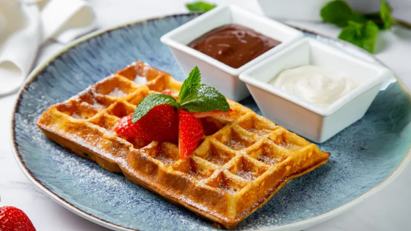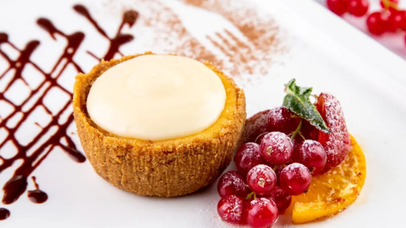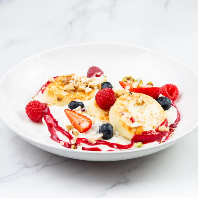 Творог, яйца, соус сметанный, ягоды