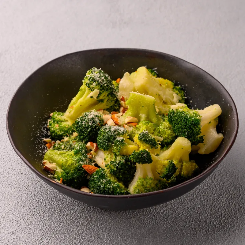 Свежие брокколи, миндаль, оливковое масло