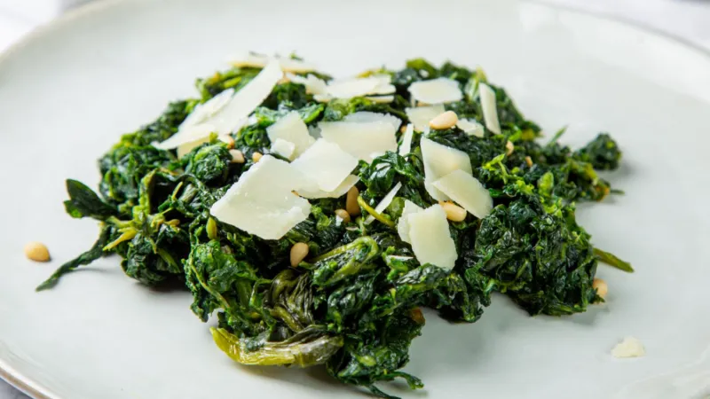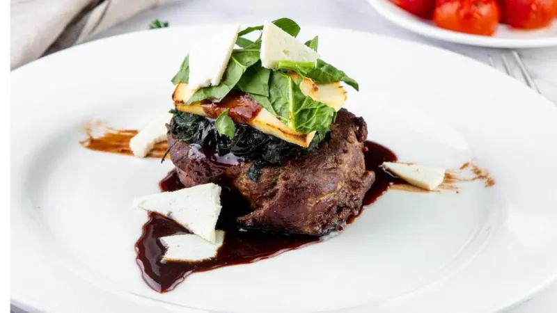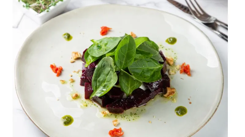 Взбитый козий сыр с вяленной свеклой и шпинатом