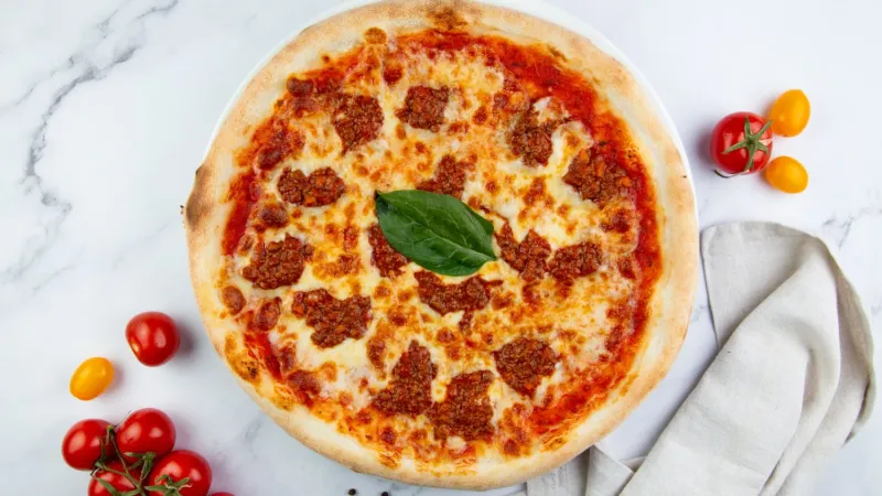 Пицца соус,проволоне, соус болонезе, оливковое масло
