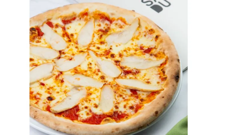 Пицца соус, моцарелла проволоне, курица
