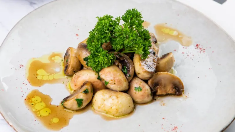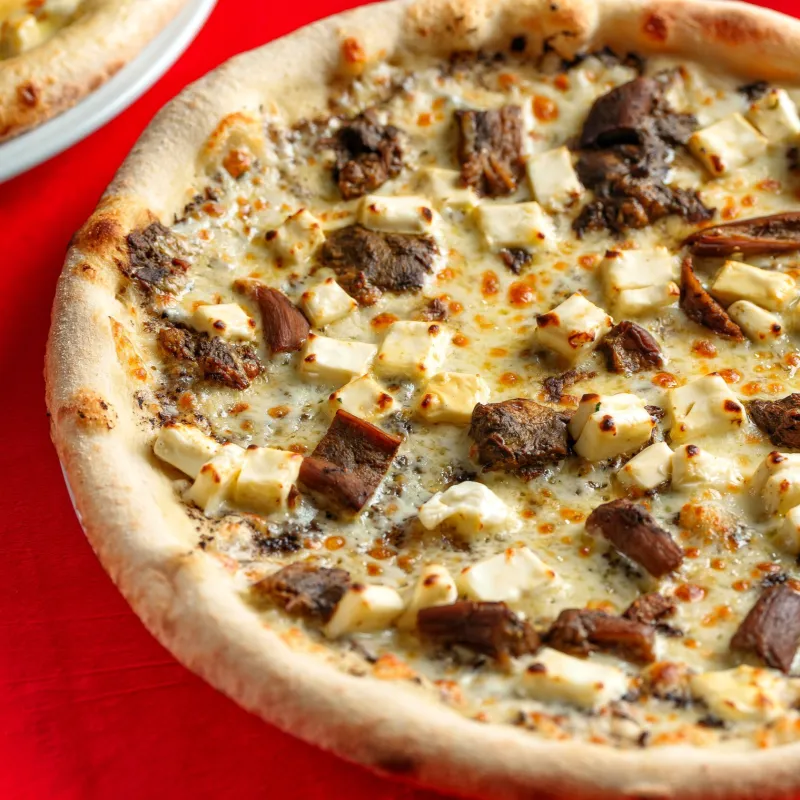 Белые грибы, трюфельный крем, сыр Provolone, сыр фета, оливковое масло
