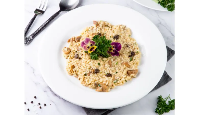 Рисовая каша приготовленная из итальянского риса на сливках. Возможно приготовление на альтернативном молоке