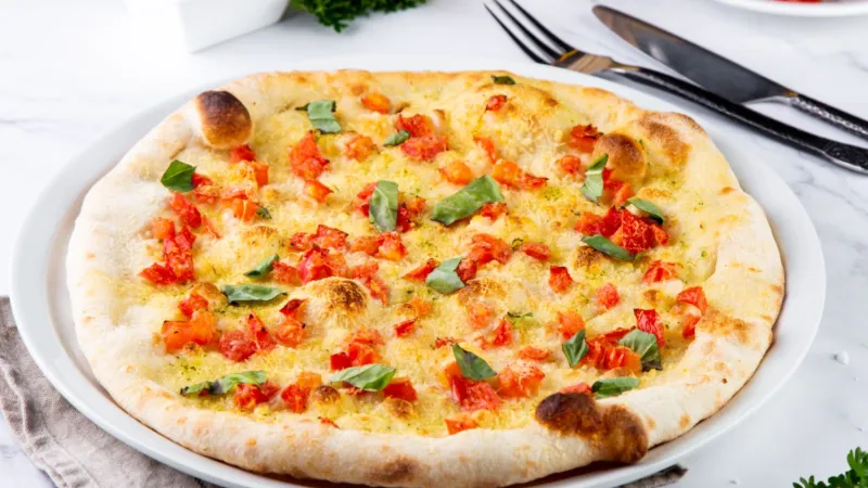 Моцарелла ,пицца соус, оливковое масло , базилик
