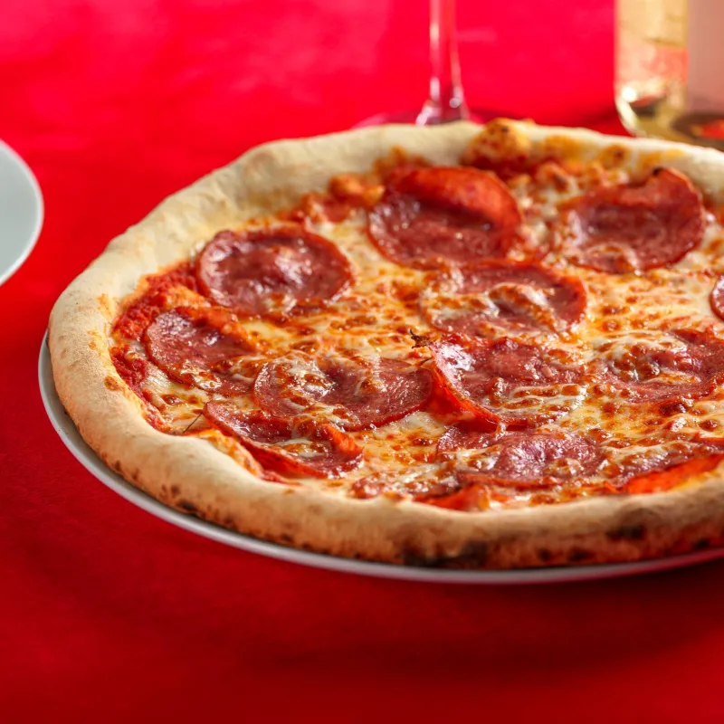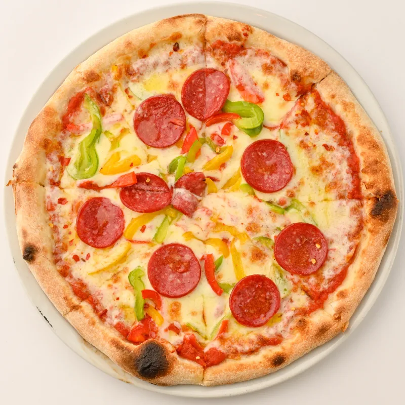 Пицца соус, салями,проволоне, болгарский перец, перец чили