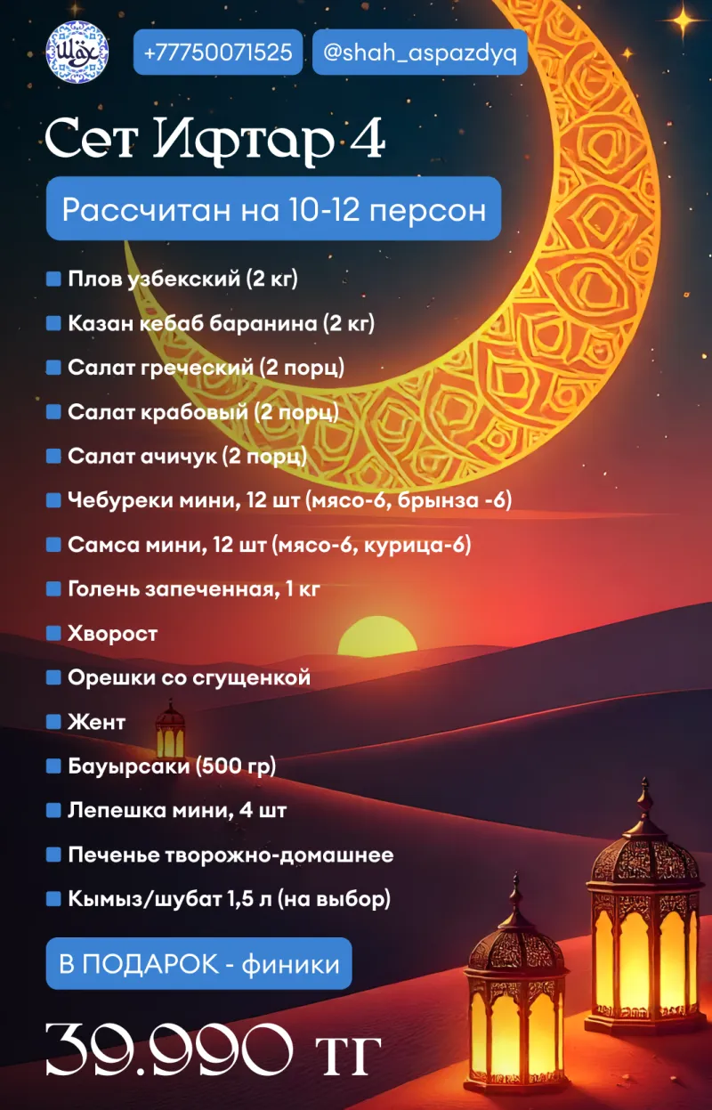 ШАХ кулинария 📍на Гагарина 292 📍на Рыскулова-ул.Ханшатыр 287/1 📍на Жандосова-ул.Бакшалы 7/29 📍на Сатпаева 5 Ресторан до 220 персон 8-708-700-70-88 📍Хан Шатыр 287/1
