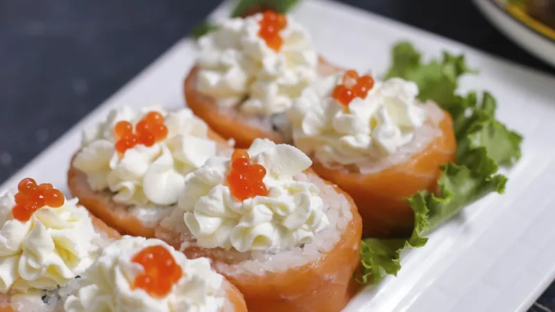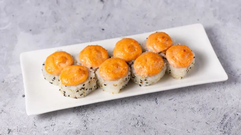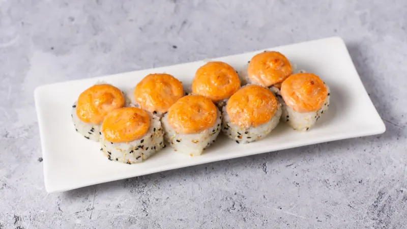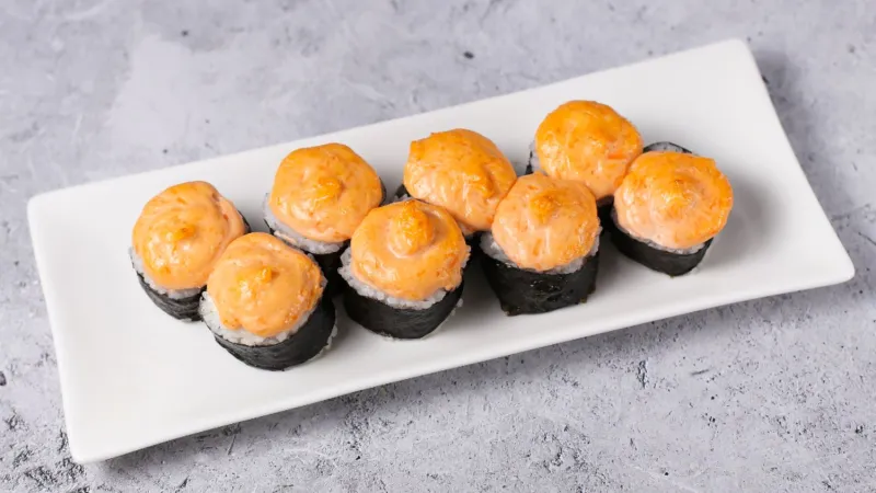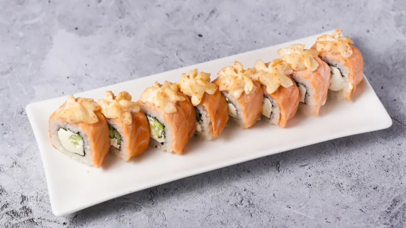 майонез, икра тобико, лосось