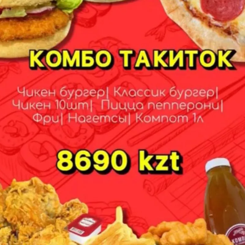 чикенбургер | классик бургер | чикен 10 шт | пицца пепперони | фри | наггетсы | компот 1л