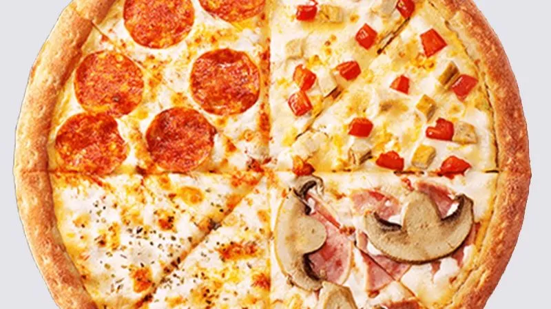 сыр моцарелла, соус томат, колбаса, фарш, грибы, куриный филе