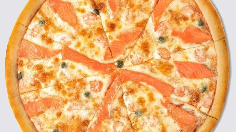сёмга, грибы, сыр моцарелла, соус томат, черри