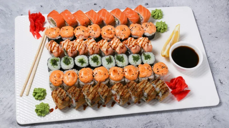 поцелуй гейши, хот ролл, филадельфия, хит ролл, чукка маки, такиток