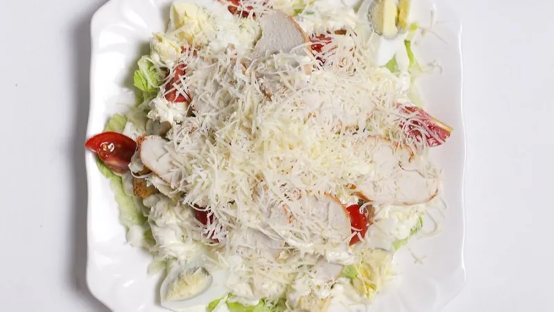 айсберг, куриная грудка, черри, яйцо, сыр пармезан, соус цезарь