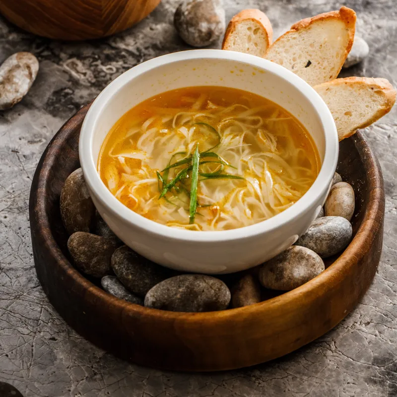 куриное мясо, домашняя лапша, морковь, хлебцы