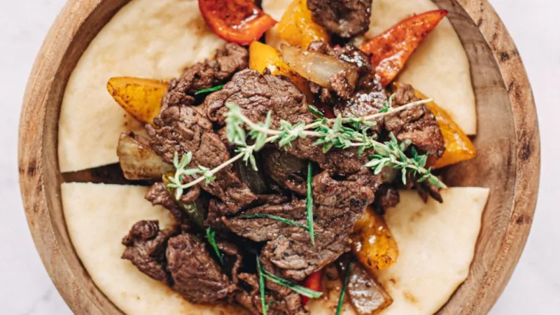 конина, масло сливочное домашнее, черри, бидай, соус перечный