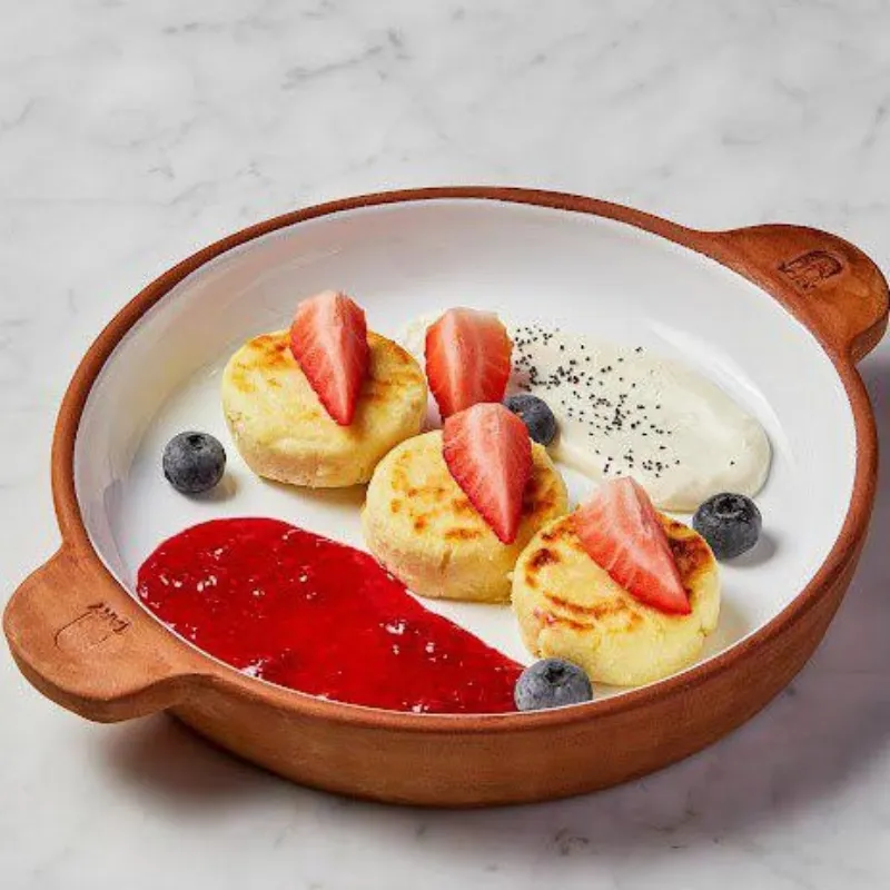 творог домашний, яйца, манная крупа, малиновый джем, сметана домашняя, ягоды