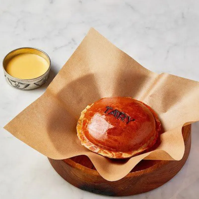 говяжьи мозги, жая, сливки, специи в заварном тесте