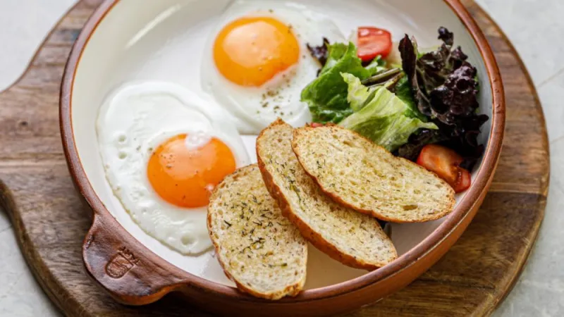 рукола, яйца, отрубные тосты