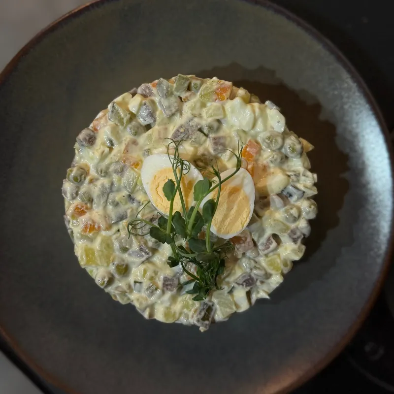 Классическое оливье с говяжьим языком, порция рассчитана на 3 - 4 гостя