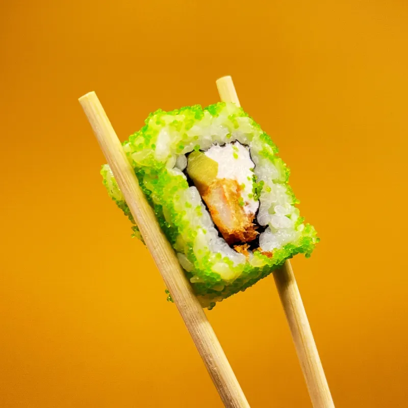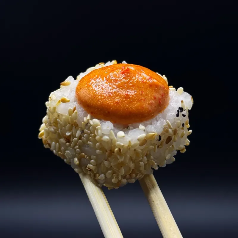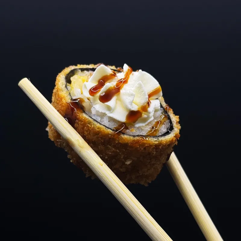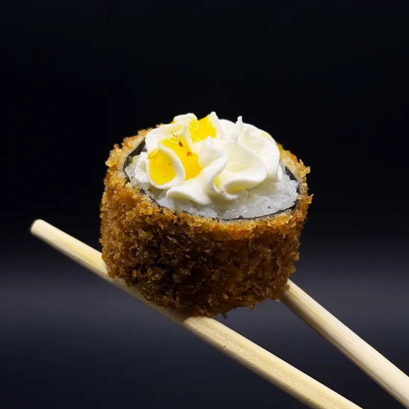 Запеченный ролл с креветкой (порция 8 шт.) – хрустящий темпура-ролл с нежной креветкой, покрытый воздушной сырной шапочкой. Завершается пикантным мангово-чилийским соусом, который добавляет сладкую остринку и экзотический вкус. Идеальное сочетание хруста, нежности и пряного акцента. Подается с соевым соусом, васаби и маринованным имбирем.