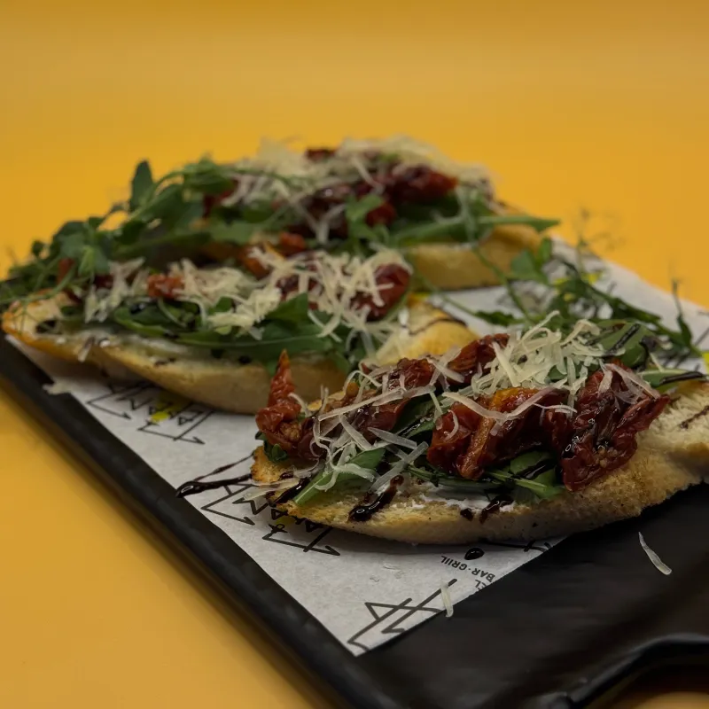 Помидоры свежие, сыр Моцарелла, пицца соус, соус Песто, масло оливковое.