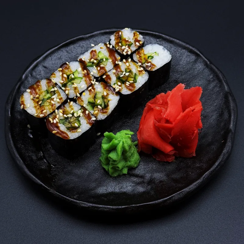 классические хосомаки с нежным огурцом, завернутые в нори и рис. Легкость, свежесть и идеальный баланс вкусов. Подаются с соевым соусом, васаби и маринованным имбирем.