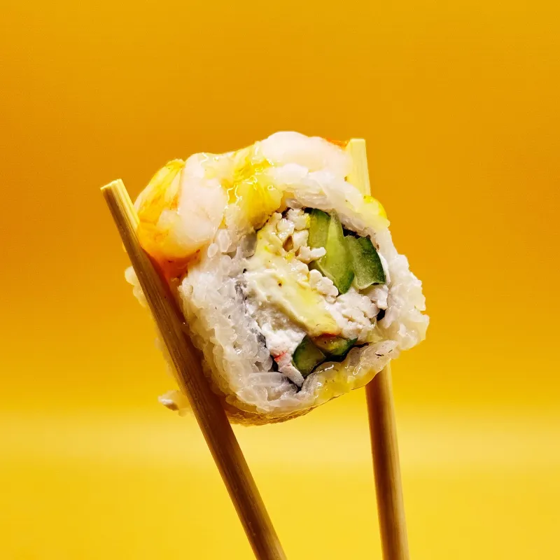 Запеченный ролл с креветкой и авокадо в соусе спайси (8 шт. порция)– насыщенный вкус креветки в сочетании с нежным авокадо, завернутый в рис и обсыпанный ароматным кунжутом. Завершается пикантной запеченной шапочкой в фирменном спайси-соусе. Идеальный баланс мягкости и остроты. Подается с соевым соусом, васаби и маринованным имбирем.