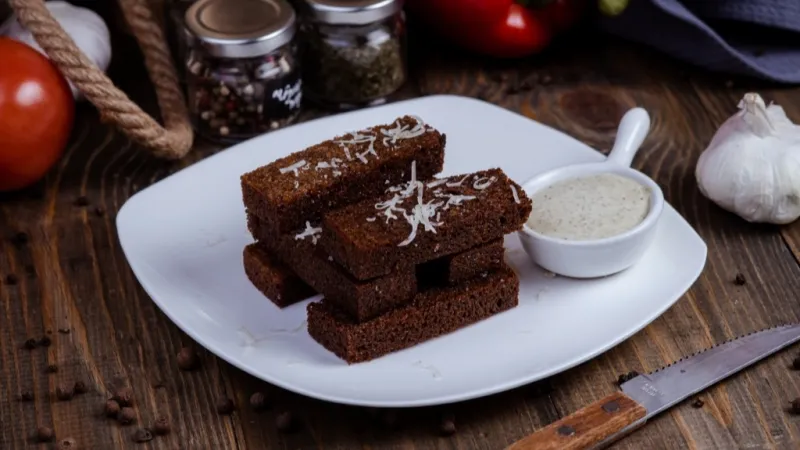 Хлеб бородинский, чеснок, сыр пармезан