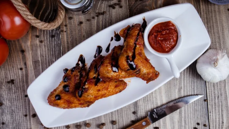 Крылья куриные, соус BBQ, бальзамик крем