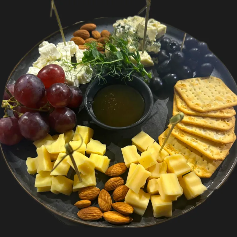 Маасдам, Пармезан, Блю чиз, Salakis, крекеры, миндаль, виноград, маслины, мёд