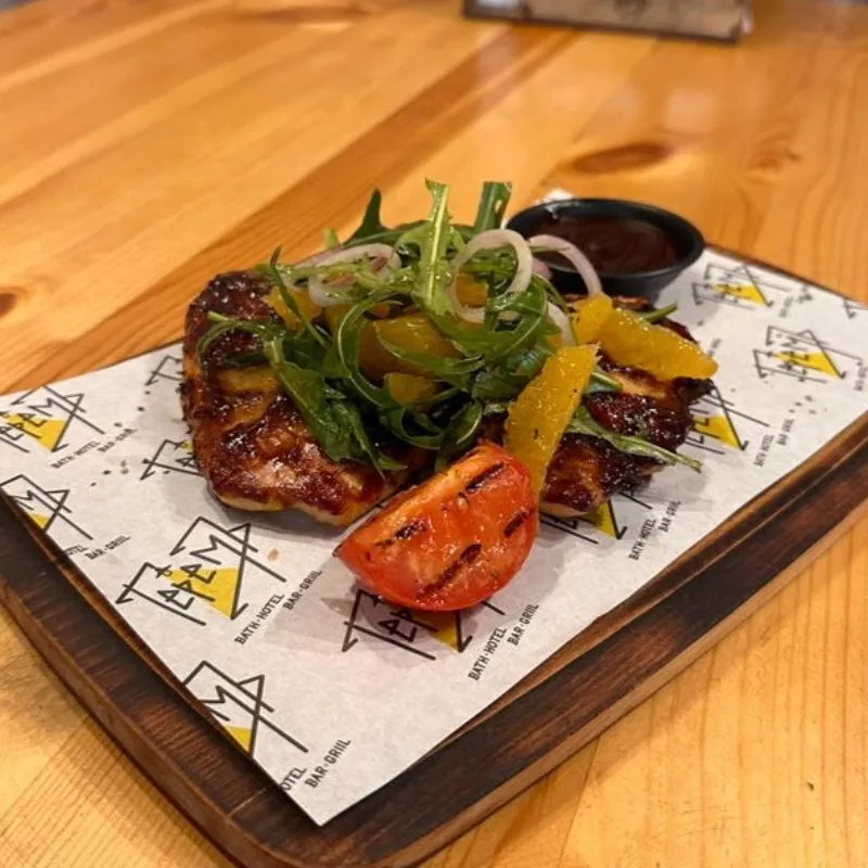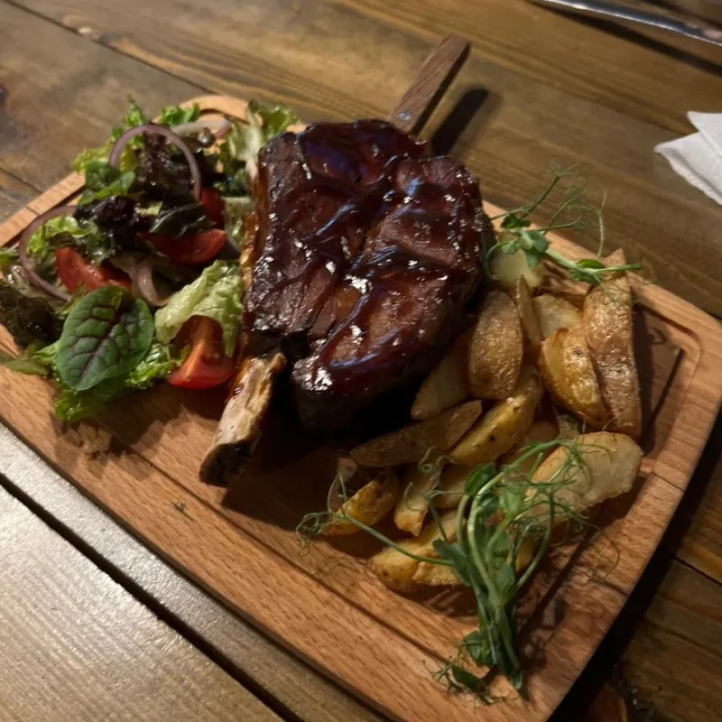 (баранья нога, картофельные дольки, микс салат)