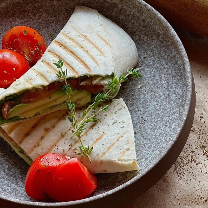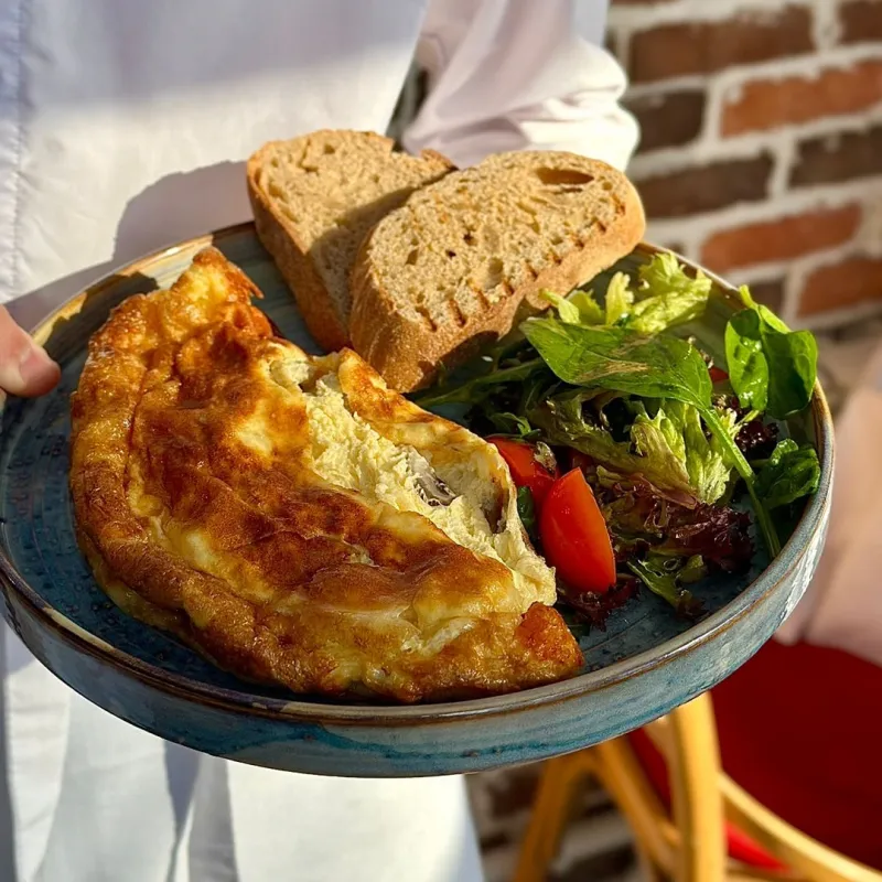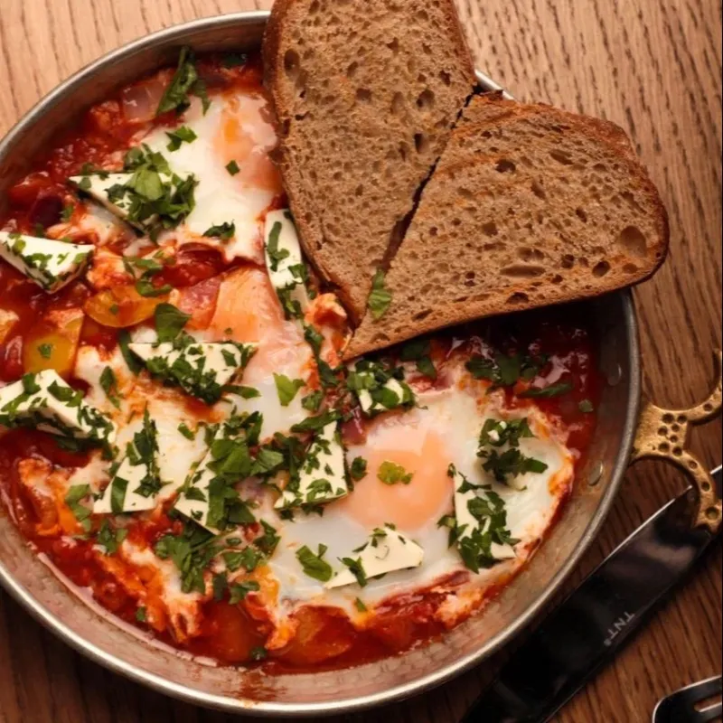 С овощами, яйцами и багетом на гриле (острота на выбор)