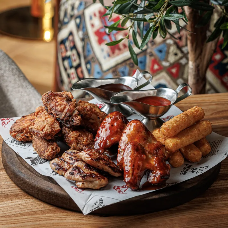 крылья BBQ / крылья американские / сырные палочки / шашлык из куриного бедра/ соусы