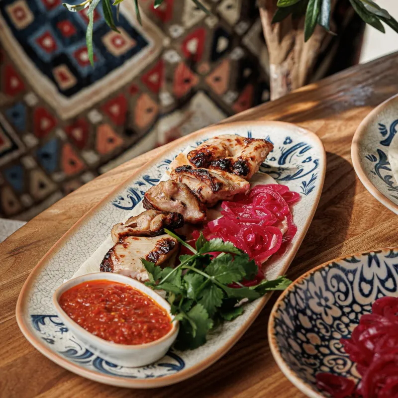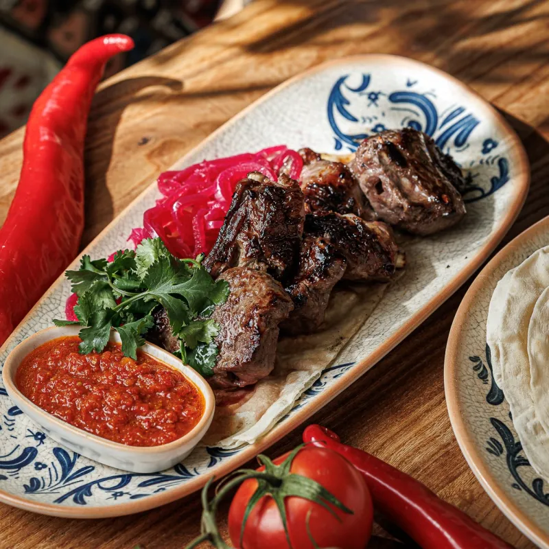 филе: баранина / кебаб из мраморной говядины / кебаб из баранины/ куриное бедро / ребра бараньи / харисса / дзадзики